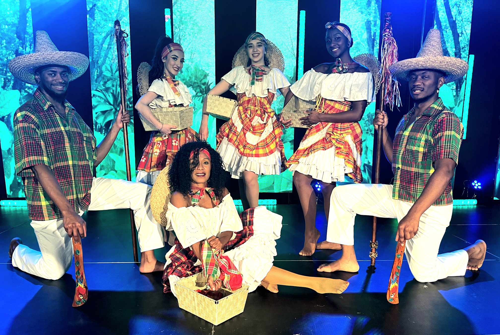 Vous découvrirez les rythmes endiablés de la Biguine, du Zouk, du Gwo ka et de la Mazurka créole de la Martinique et de la Guadeloupe… Le charme magique des Mambos de Cuba, de la Salsa de Porto Rico, de la Bachata et du Merengue de St Domingue. La féerie du carnaval de Trinidad… Le Limbo où des corps désarticulés passent sous des barres de feu.